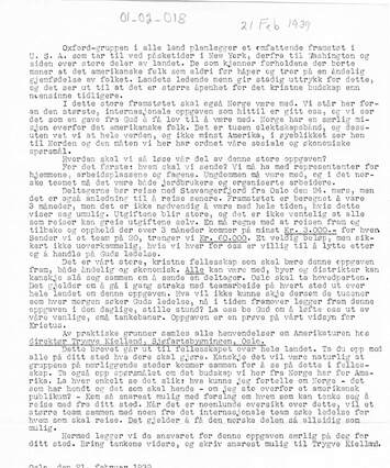 Planer for et større gruppemøte i Oslo for menn innen næringslivet og det politiske liv